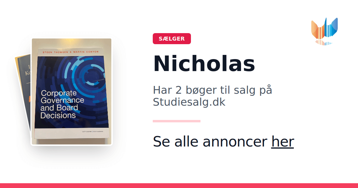Sæt dine bøger gratis til salg på Studiesalg.dk. Det er tager få minutter, og vi står for betaling og fragt når de bliver solgt.