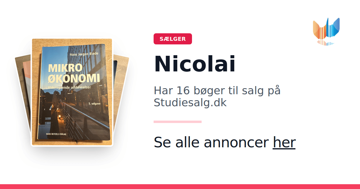Sæt dine bøger gratis til salg på Studiesalg.dk. Det er tager få minutter, og vi står for betaling og fragt når de bliver solgt.