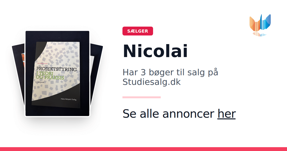 Sæt dine bøger gratis til salg på Studiesalg.dk. Det er tager få minutter, og vi står for betaling og fragt når de bliver solgt.