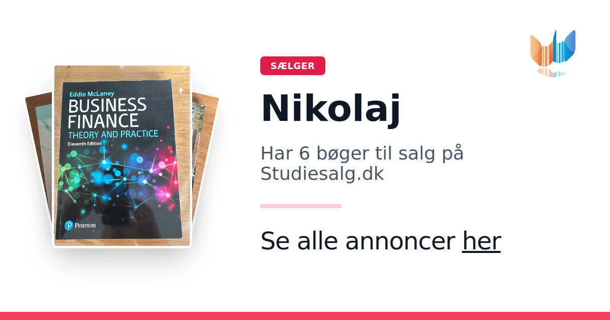 Sæt dine bøger gratis til salg på Studiesalg.dk. Det er tager få minutter, og vi står for betaling og fragt når de bliver solgt.
