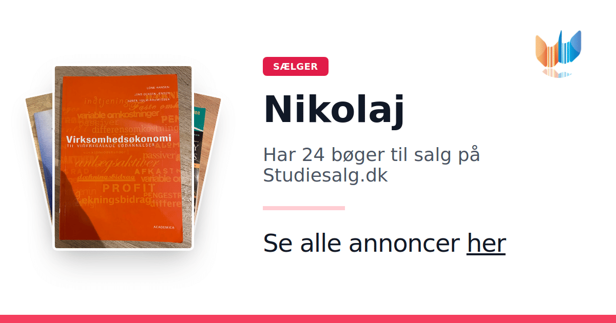 Sæt dine bøger gratis til salg på Studiesalg.dk. Det er tager få minutter, og vi står for betaling og fragt når de bliver solgt.