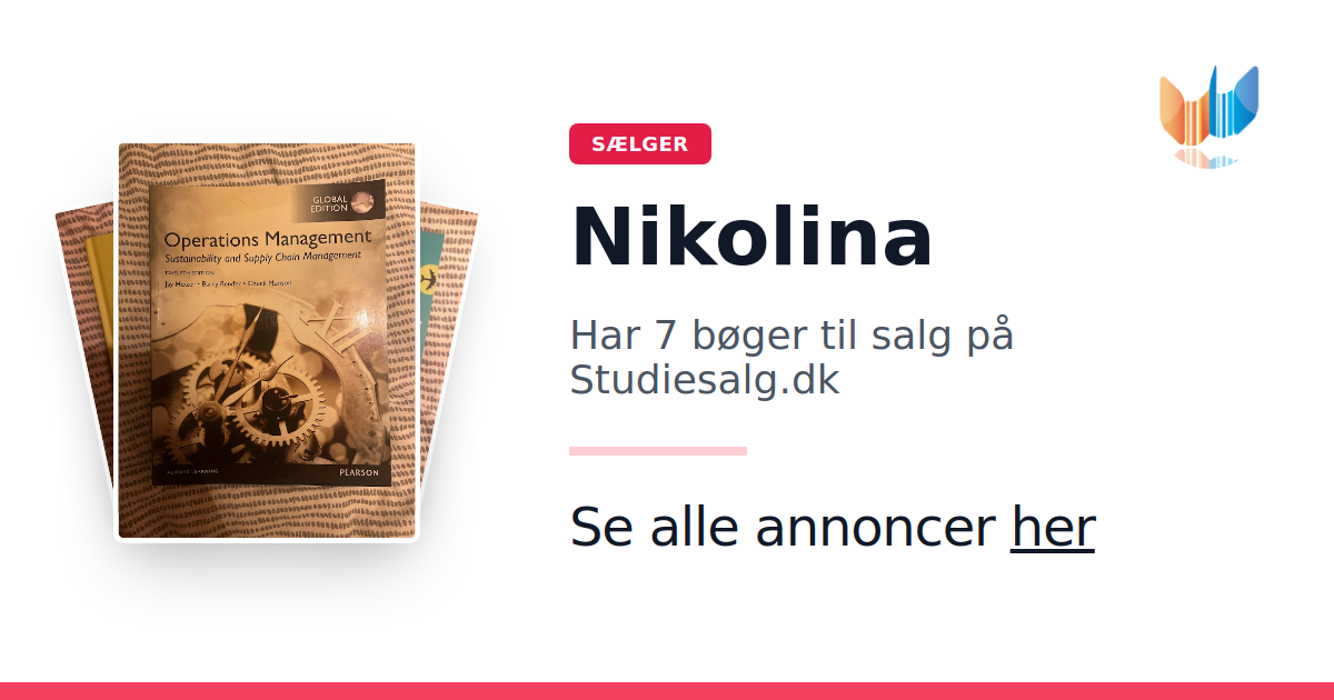 Sæt dine bøger gratis til salg på Studiesalg.dk. Det er tager få minutter, og vi står for betaling og fragt når de bliver solgt.