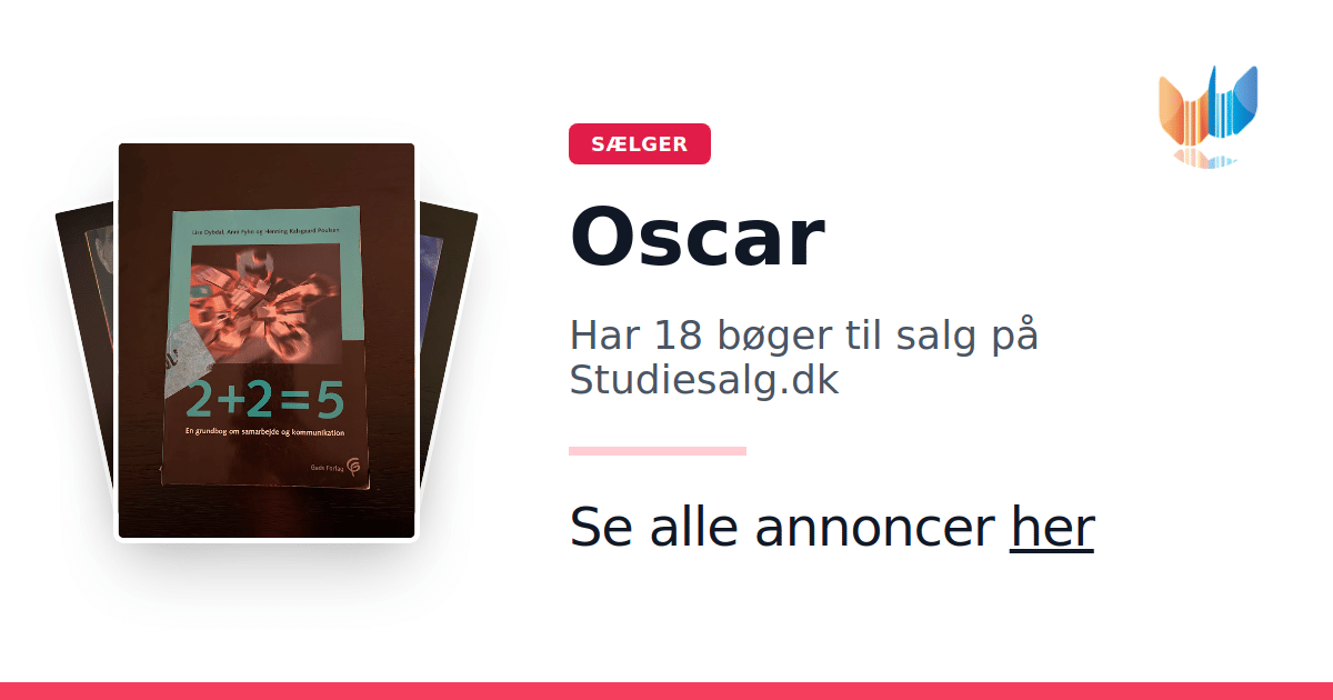 Sæt dine bøger gratis til salg på Studiesalg.dk. Det er tager få minutter, og vi står for betaling og fragt når de bliver solgt.