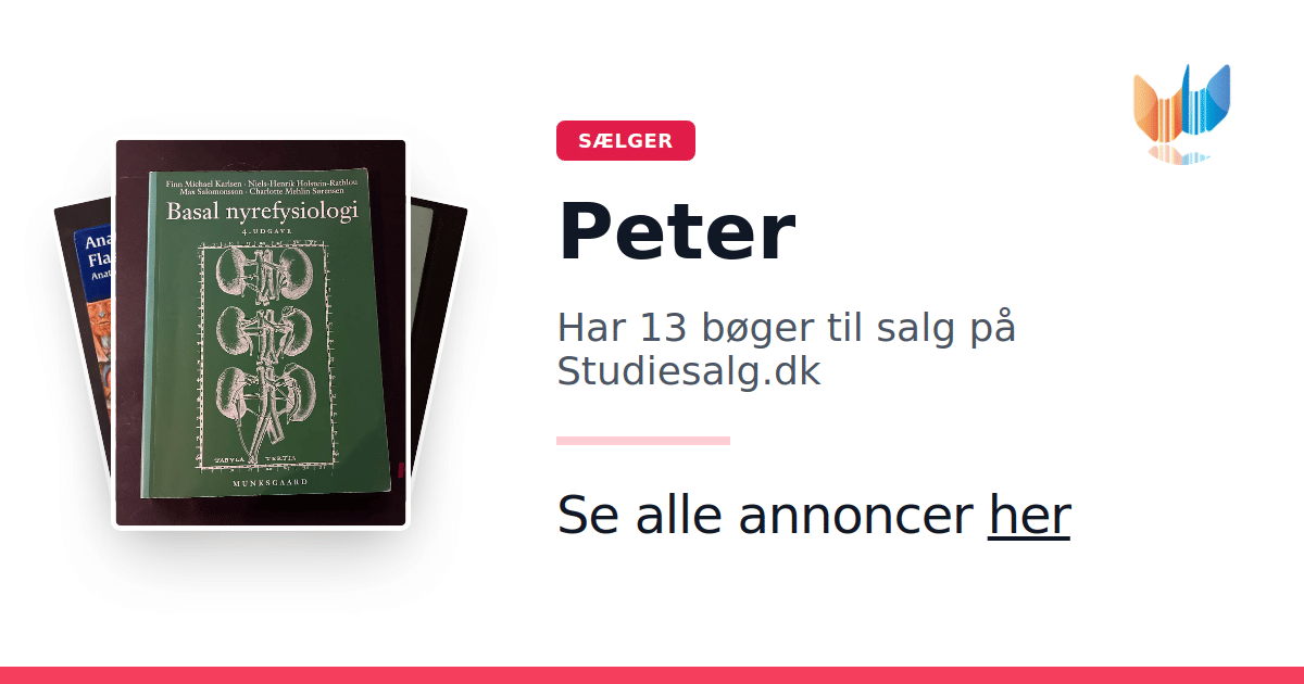 Sæt dine bøger gratis til salg på Studiesalg.dk. Det er tager få minutter, og vi står for betaling og fragt når de bliver solgt.