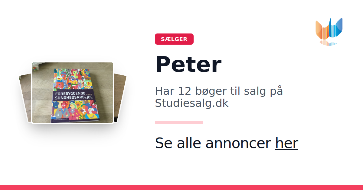 Sæt dine bøger gratis til salg på Studiesalg.dk. Det er tager få minutter, og vi står for betaling og fragt når de bliver solgt.