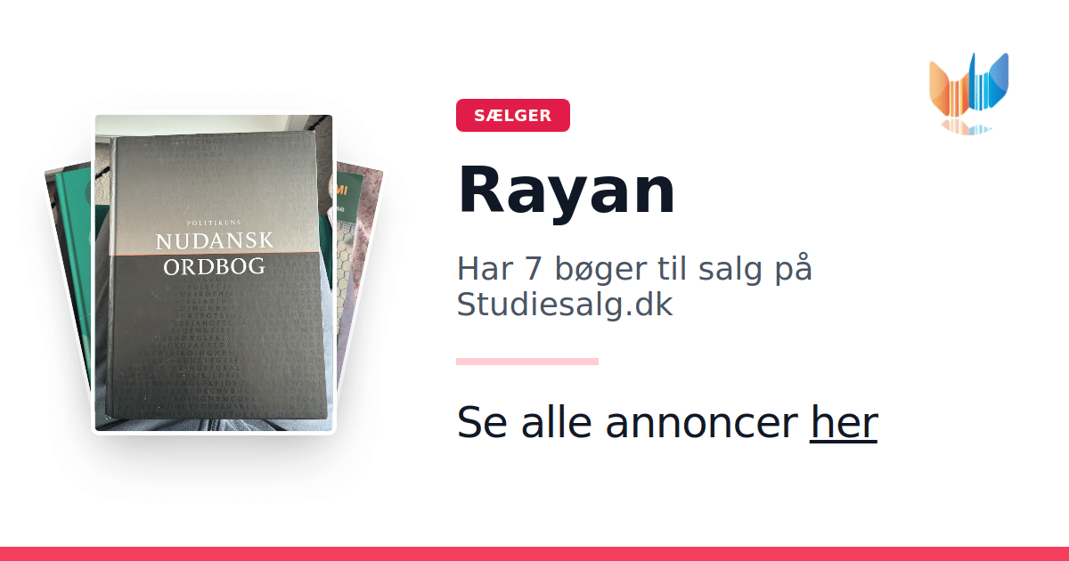 Sæt dine bøger gratis til salg på Studiesalg.dk. Det er tager få minutter, og vi står for betaling og fragt når de bliver solgt.
