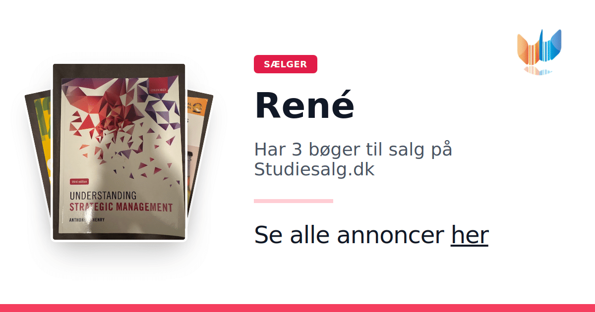 Sæt dine bøger gratis til salg på Studiesalg.dk. Det er tager få minutter, og vi står for betaling og fragt når de bliver solgt.