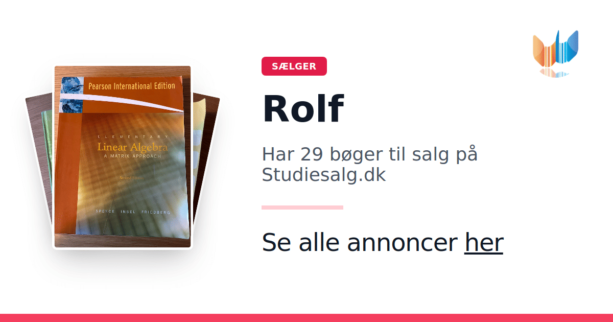 Sæt dine bøger gratis til salg på Studiesalg.dk. Det er tager få minutter, og vi står for betaling og fragt når de bliver solgt.