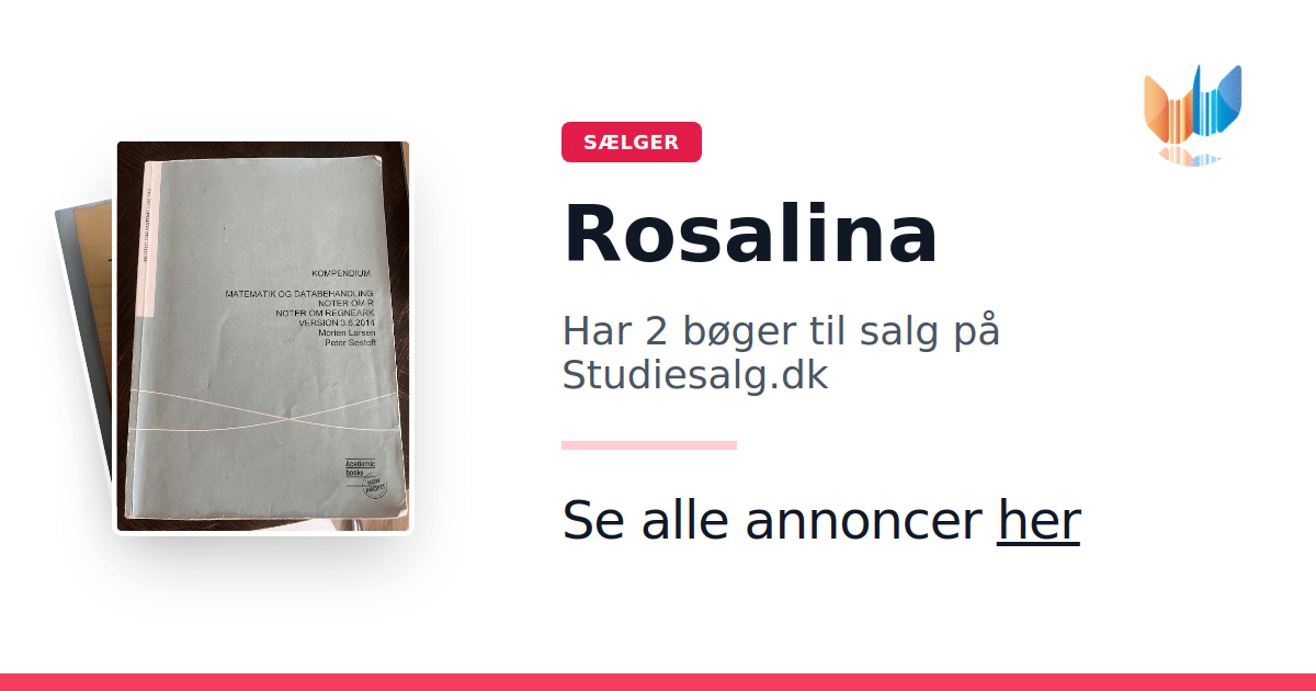 Sæt dine bøger gratis til salg på Studiesalg.dk. Det er tager få minutter, og vi står for betaling og fragt når de bliver solgt.