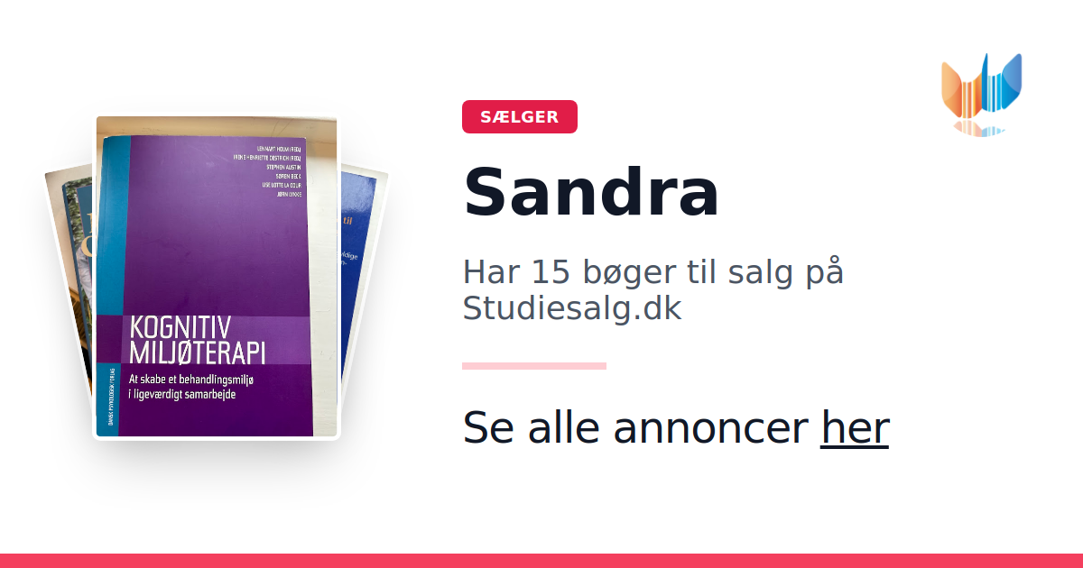 Sæt dine bøger gratis til salg på Studiesalg.dk. Det er tager få minutter, og vi står for betaling og fragt når de bliver solgt.