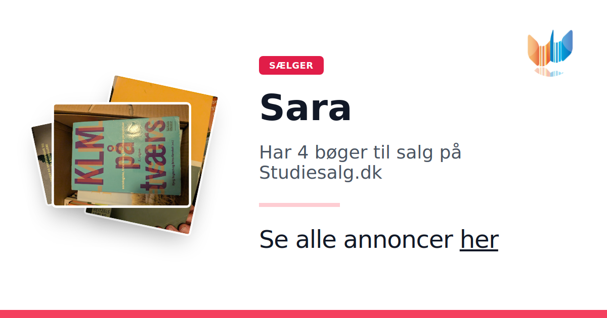 Sæt dine bøger gratis til salg på Studiesalg.dk. Det er tager få minutter, og vi står for betaling og fragt når de bliver solgt.