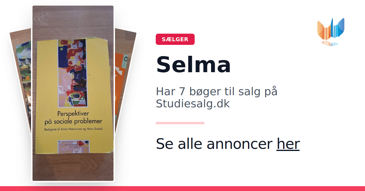Sæt dine bøger gratis til salg på Studiesalg.dk. Det er tager få minutter, og vi står for betaling og fragt når de bliver solgt.