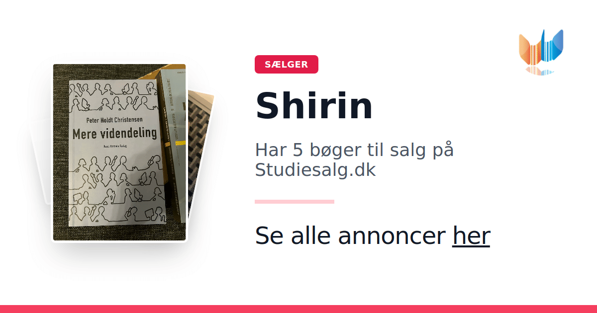 Sæt dine bøger gratis til salg på Studiesalg.dk. Det er tager få minutter, og vi står for betaling og fragt når de bliver solgt.