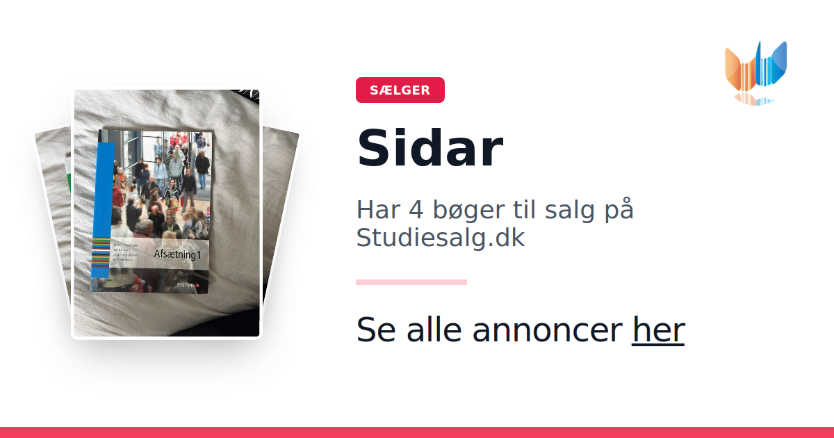 Sæt dine bøger gratis til salg på Studiesalg.dk. Det er tager få minutter, og vi står for betaling og fragt når de bliver solgt.