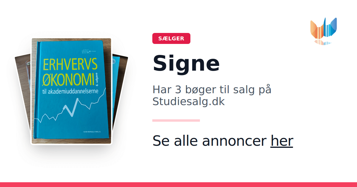 Sæt dine bøger gratis til salg på Studiesalg.dk. Det er tager få minutter, og vi står for betaling og fragt når de bliver solgt.
