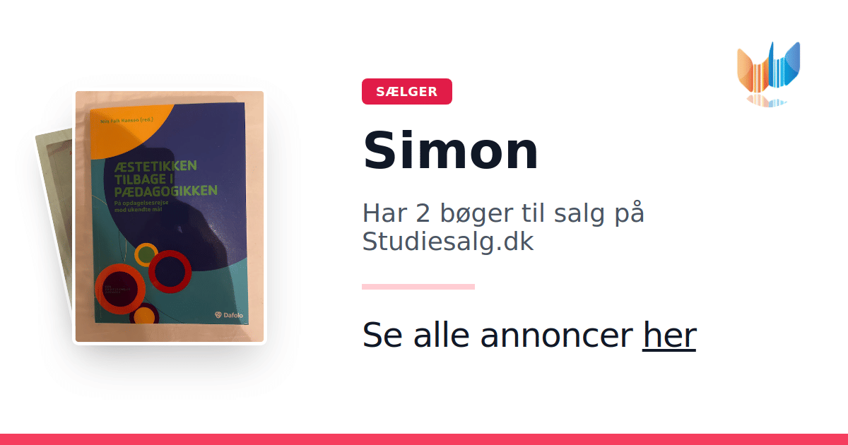 Sæt dine bøger gratis til salg på Studiesalg.dk. Det er tager få minutter, og vi står for betaling og fragt når de bliver solgt.