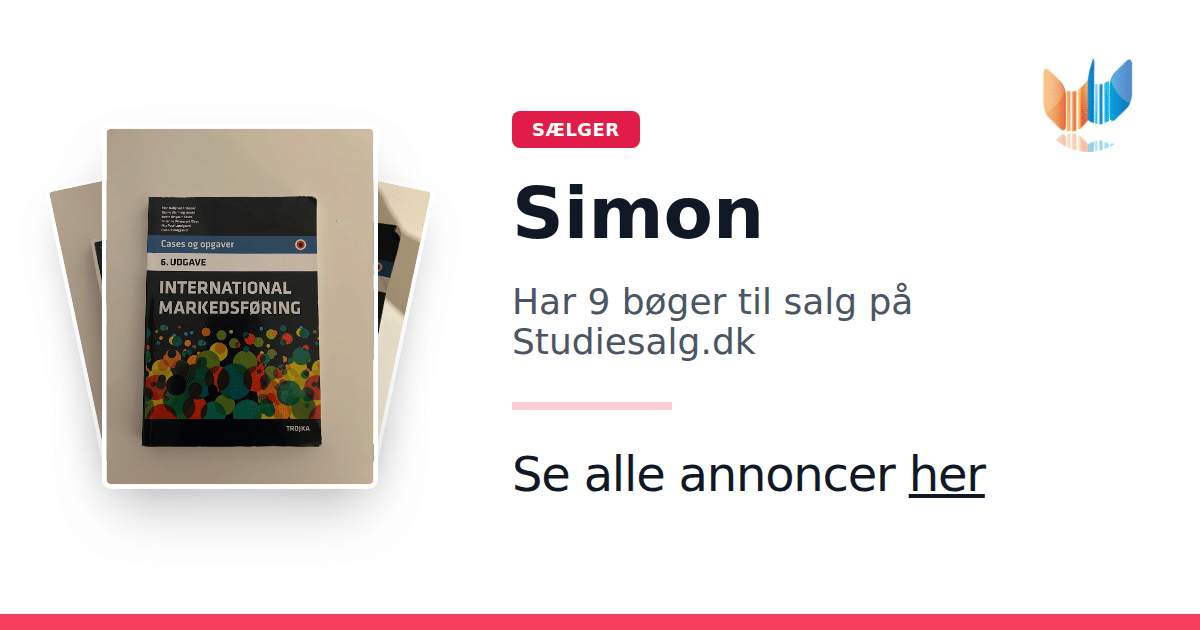 Sæt dine bøger gratis til salg på Studiesalg.dk. Det er tager få minutter, og vi står for betaling og fragt når de bliver solgt.