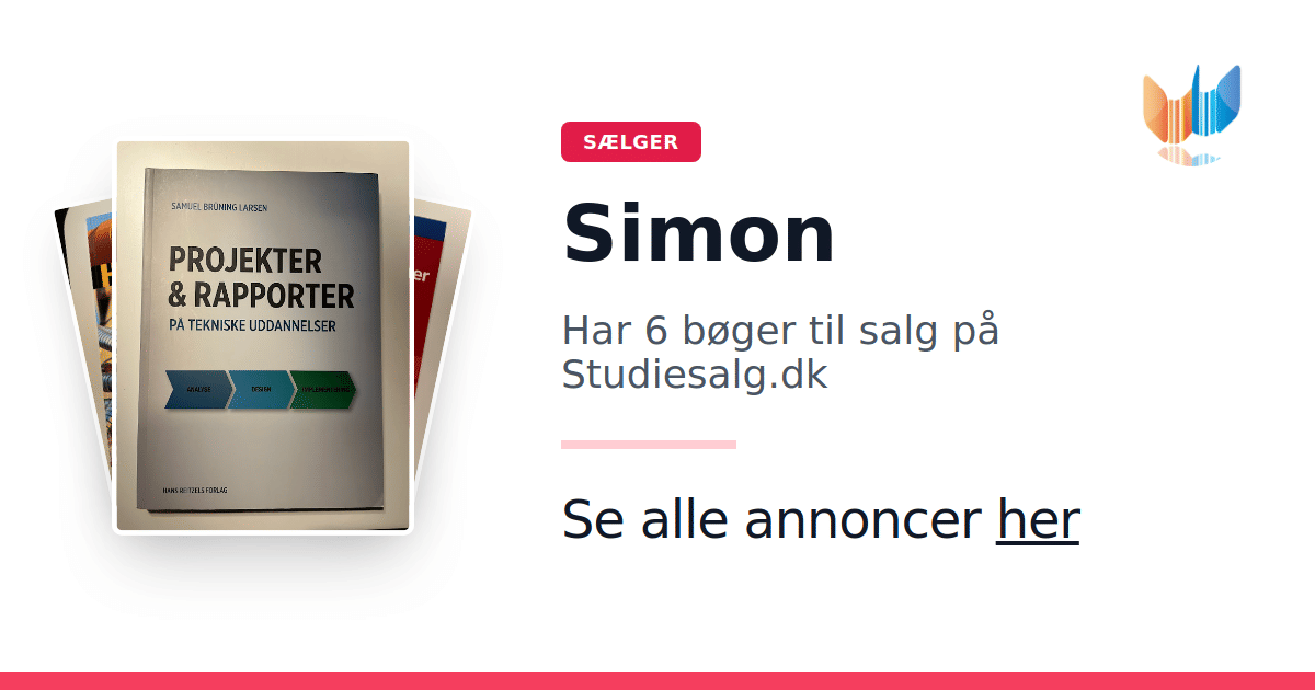 Sæt dine bøger gratis til salg på Studiesalg.dk. Det er tager få minutter, og vi står for betaling og fragt når de bliver solgt.