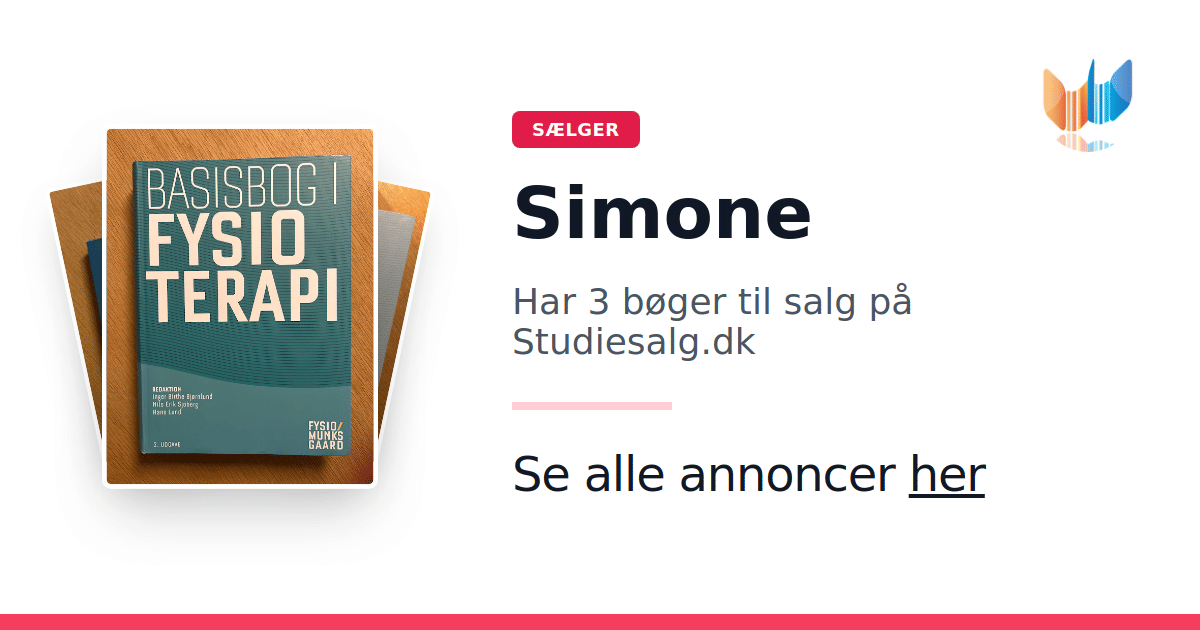 Sæt dine bøger gratis til salg på Studiesalg.dk. Det er tager få minutter, og vi står for betaling og fragt når de bliver solgt.