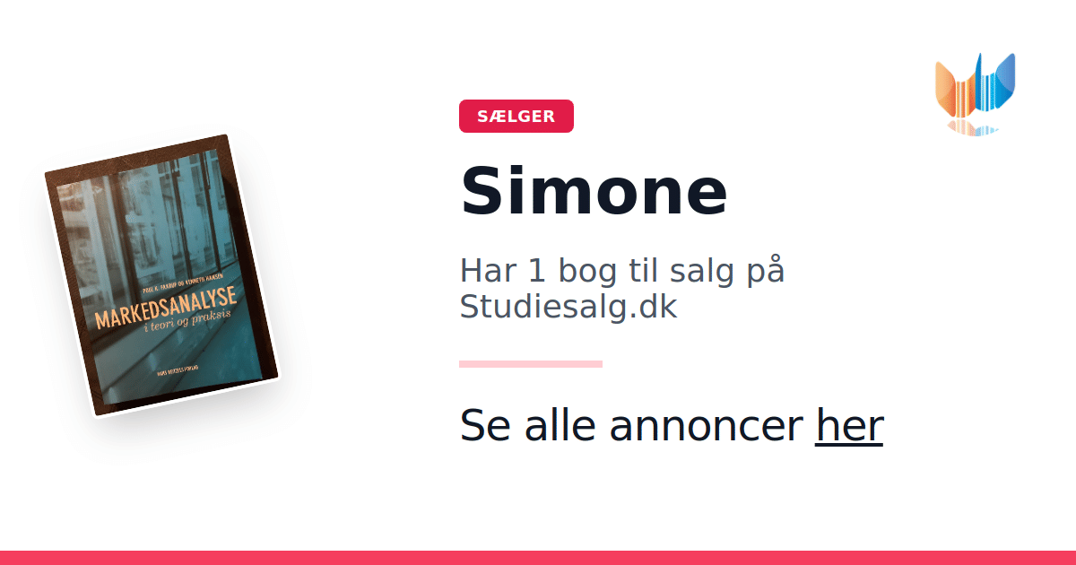 Sæt dine bøger gratis til salg på Studiesalg.dk. Det er tager få minutter, og vi står for betaling og fragt når de bliver solgt.