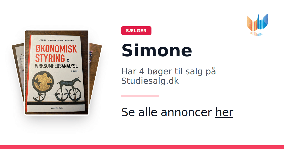 Sæt dine bøger gratis til salg på Studiesalg.dk. Det er tager få minutter, og vi står for betaling og fragt når de bliver solgt.