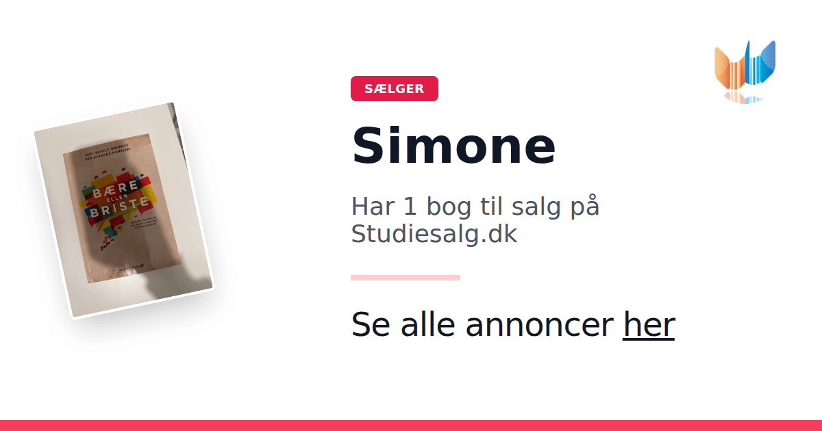 Sæt dine bøger gratis til salg på Studiesalg.dk. Det er tager få minutter, og vi står for betaling og fragt når de bliver solgt.