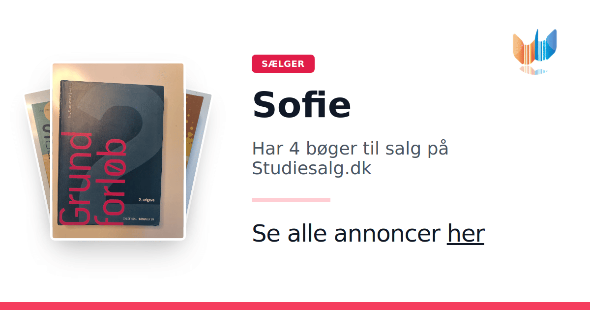 Sæt dine bøger gratis til salg på Studiesalg.dk. Det er tager få minutter, og vi står for betaling og fragt når de bliver solgt.