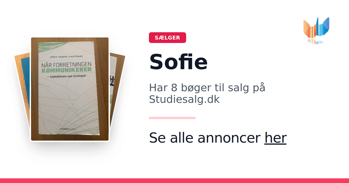 Sæt dine bøger gratis til salg på Studiesalg.dk. Det er tager få minutter, og vi står for betaling og fragt når de bliver solgt.