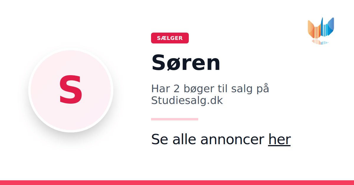 Sæt dine bøger gratis til salg på Studiesalg.dk. Det er tager få minutter, og vi står for betaling og fragt når de bliver solgt.