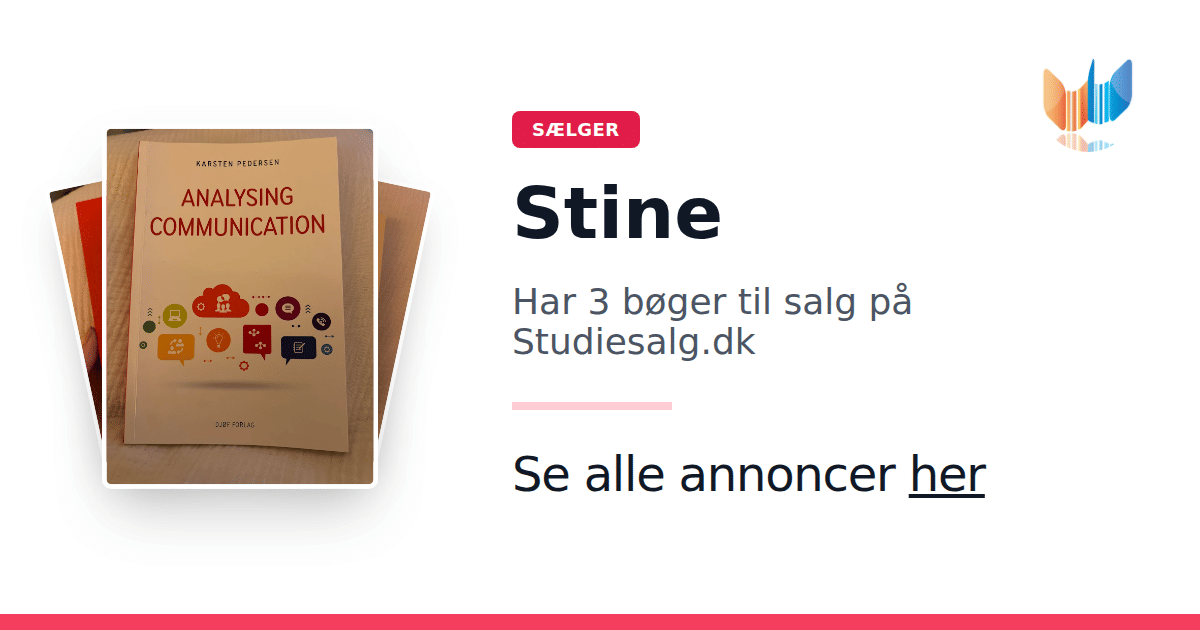Sæt dine bøger gratis til salg på Studiesalg.dk. Det er tager få minutter, og vi står for betaling og fragt når de bliver solgt.