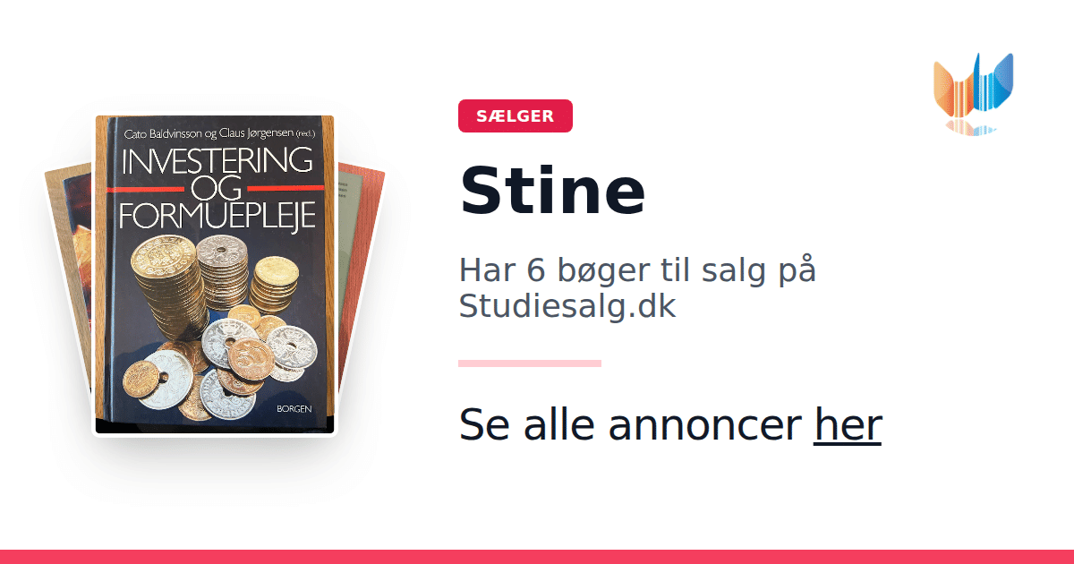Sæt dine bøger gratis til salg på Studiesalg.dk. Det er tager få minutter, og vi står for betaling og fragt når de bliver solgt.