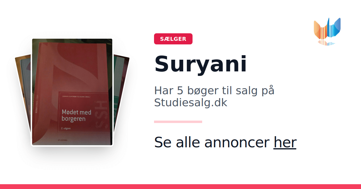Sæt dine bøger gratis til salg på Studiesalg.dk. Det er tager få minutter, og vi står for betaling og fragt når de bliver solgt.