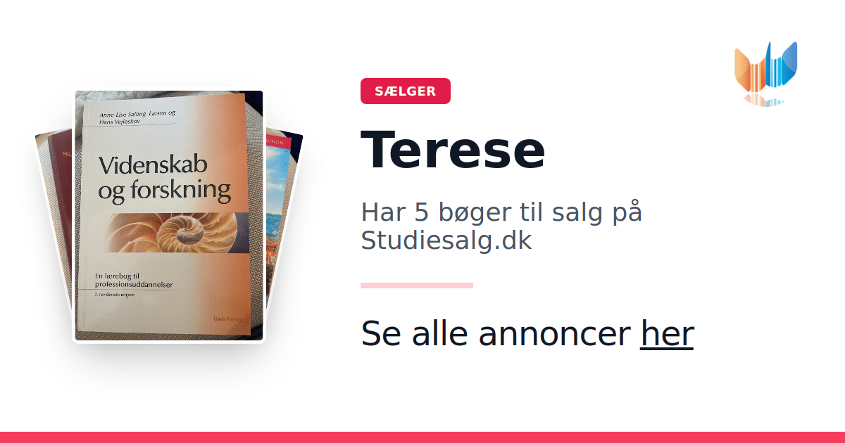 Sæt dine bøger gratis til salg på Studiesalg.dk. Det er tager få minutter, og vi står for betaling og fragt når de bliver solgt.
