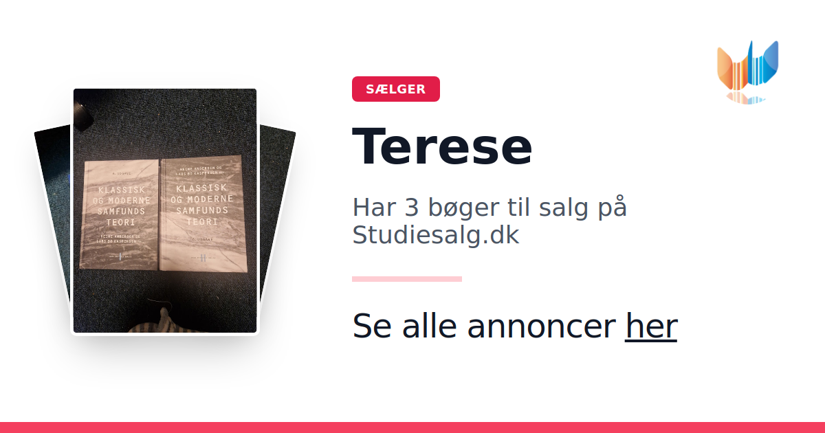 Sæt dine bøger gratis til salg på Studiesalg.dk. Det er tager få minutter, og vi står for betaling og fragt når de bliver solgt.