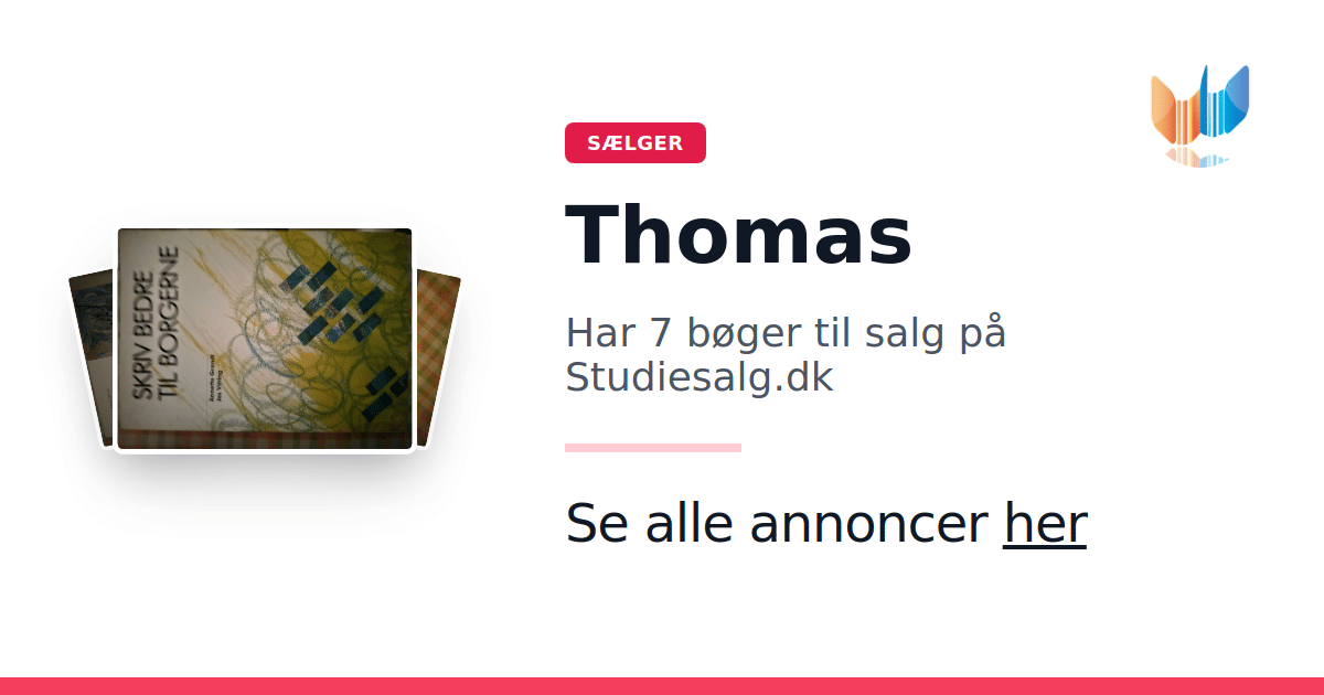 Sæt dine bøger gratis til salg på Studiesalg.dk. Det er tager få minutter, og vi står for betaling og fragt når de bliver solgt.