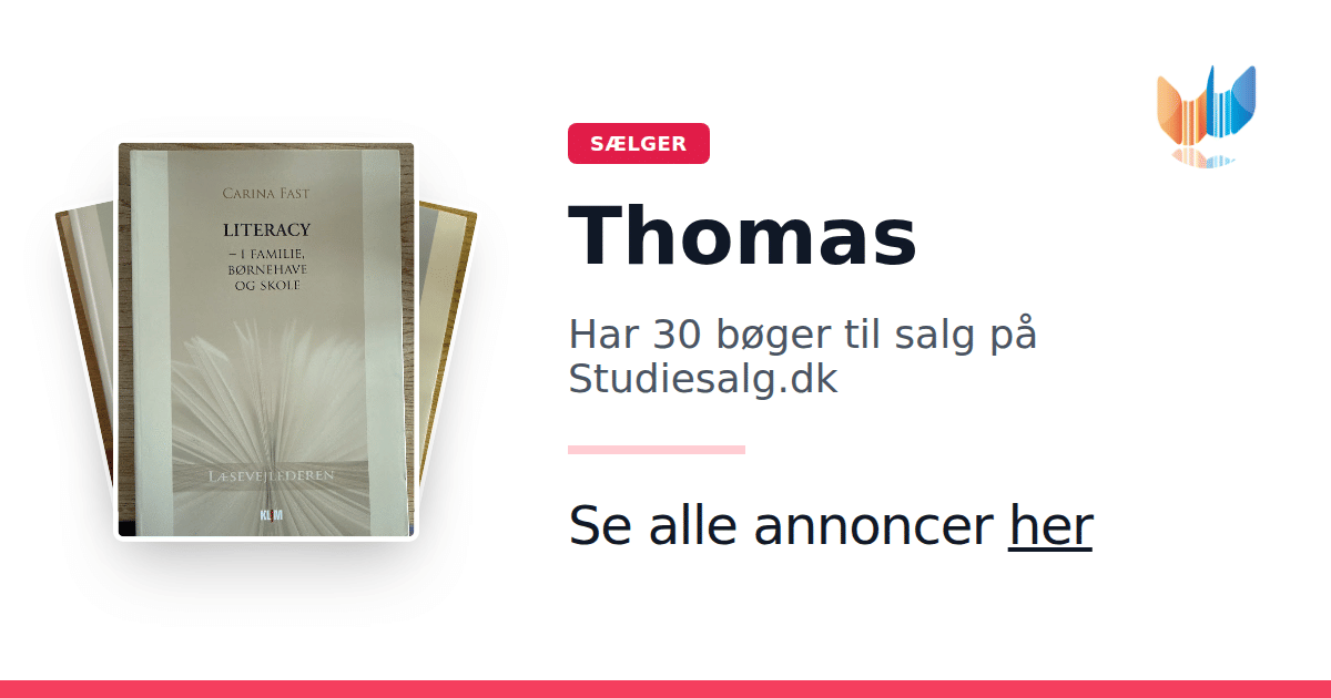 Sæt dine bøger gratis til salg på Studiesalg.dk. Det er tager få minutter, og vi står for betaling og fragt når de bliver solgt.