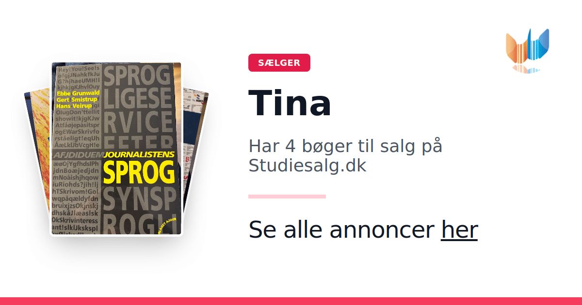 Sæt dine bøger gratis til salg på Studiesalg.dk. Det er tager få minutter, og vi står for betaling og fragt når de bliver solgt.