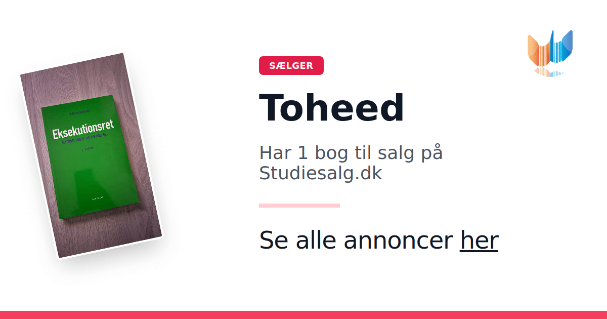 Sæt dine bøger gratis til salg på Studiesalg.dk. Det er tager få minutter, og vi står for betaling og fragt når de bliver solgt.