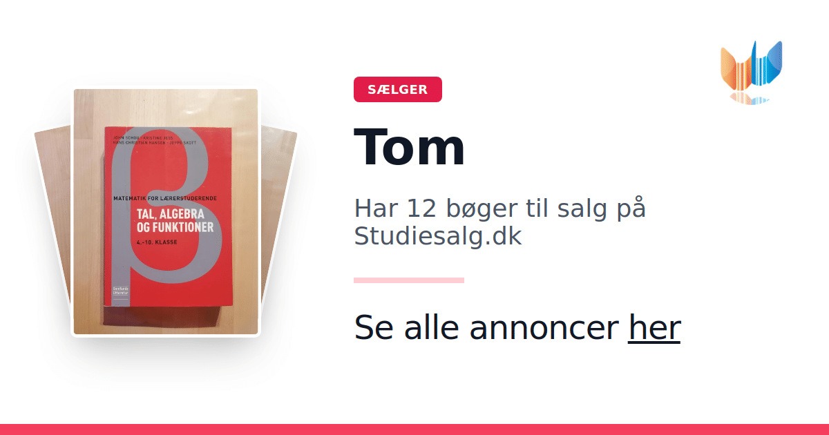 Sæt dine bøger gratis til salg på Studiesalg.dk. Det er tager få minutter, og vi står for betaling og fragt når de bliver solgt.