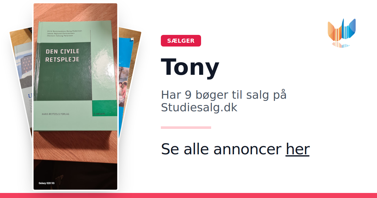 Sæt dine bøger gratis til salg på Studiesalg.dk. Det er tager få minutter, og vi står for betaling og fragt når de bliver solgt.