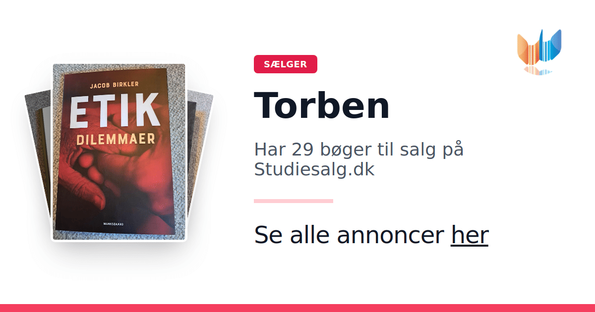 Sæt dine bøger gratis til salg på Studiesalg.dk. Det er tager få minutter, og vi står for betaling og fragt når de bliver solgt.