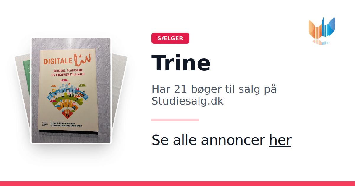 Sæt dine bøger gratis til salg på Studiesalg.dk. Det er tager få minutter, og vi står for betaling og fragt når de bliver solgt.