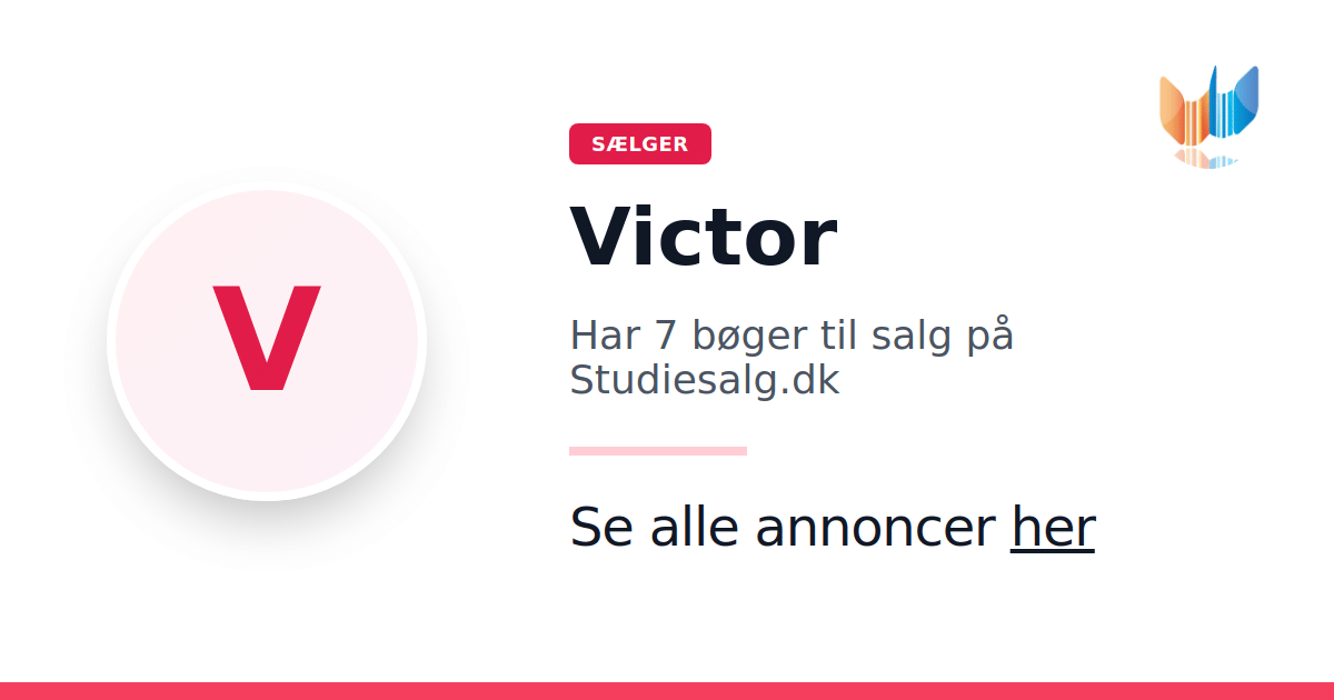 Sæt dine bøger gratis til salg på Studiesalg.dk. Det er tager få minutter, og vi står for betaling og fragt når de bliver solgt.