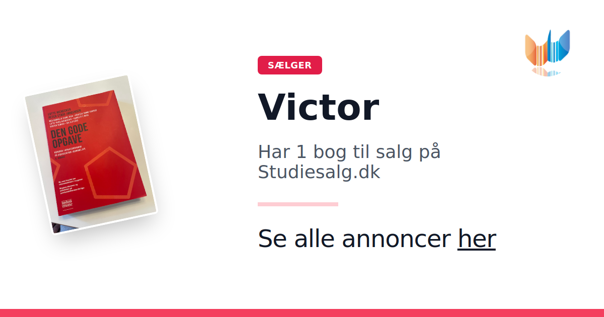 Sæt dine bøger gratis til salg på Studiesalg.dk. Det er tager få minutter, og vi står for betaling og fragt når de bliver solgt.