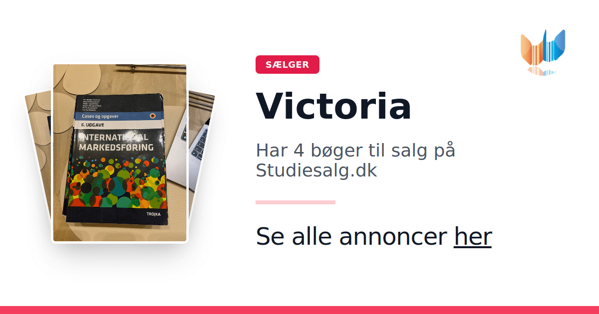 Sæt dine bøger gratis til salg på Studiesalg.dk. Det er tager få minutter, og vi står for betaling og fragt når de bliver solgt.