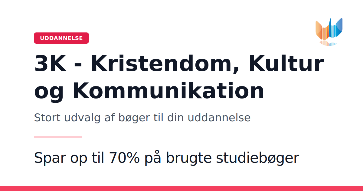 Her kan du finde billige pensumbøger til 3K - Kristendom, Kultur og Kommunikation uddannelsen.