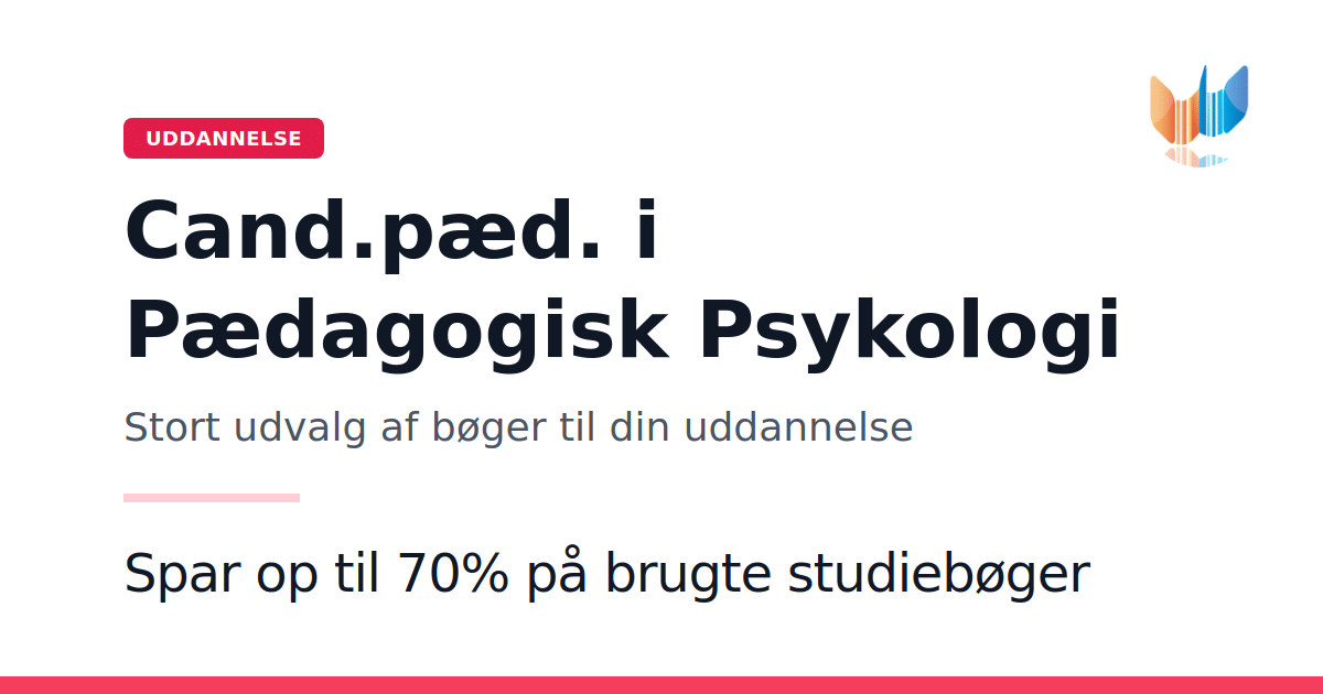 Her kan du finde billige pensumbøger til Cand.pæd. i Pædagogisk Psykologi uddannelsen.